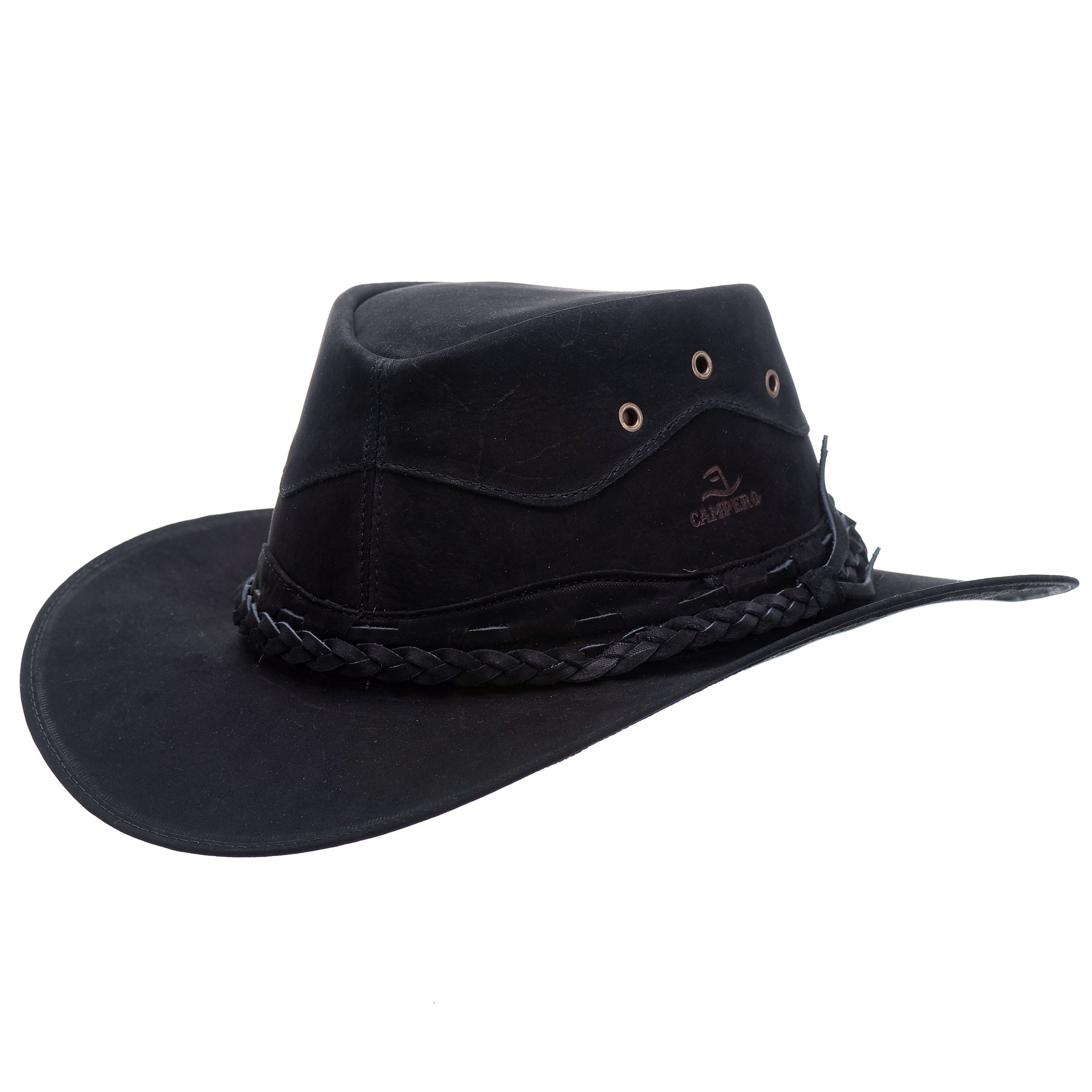 Chapéu Country em Couro com Detalhes em Trança Nobuk Preto Ref.: 3000
