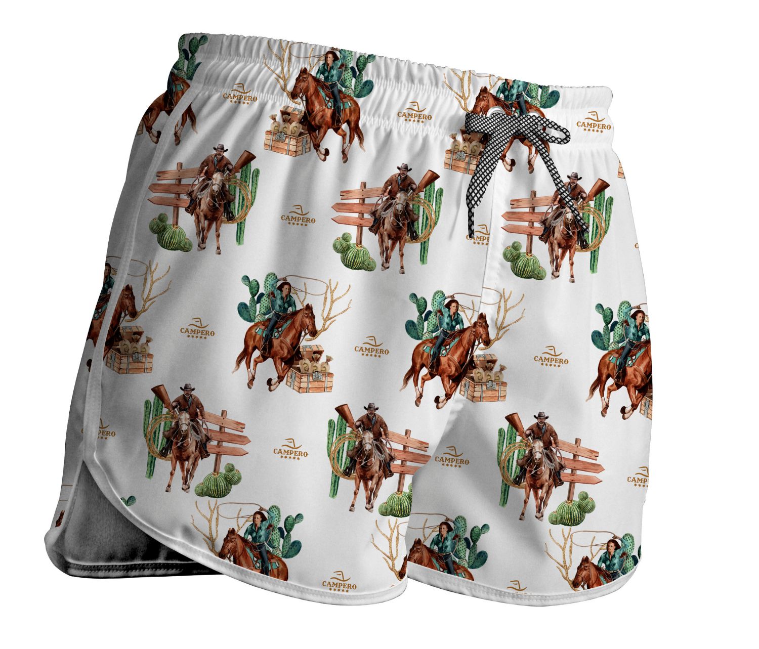 Short Feminino Country Moda Praia Campero Estampa Montaria Branco